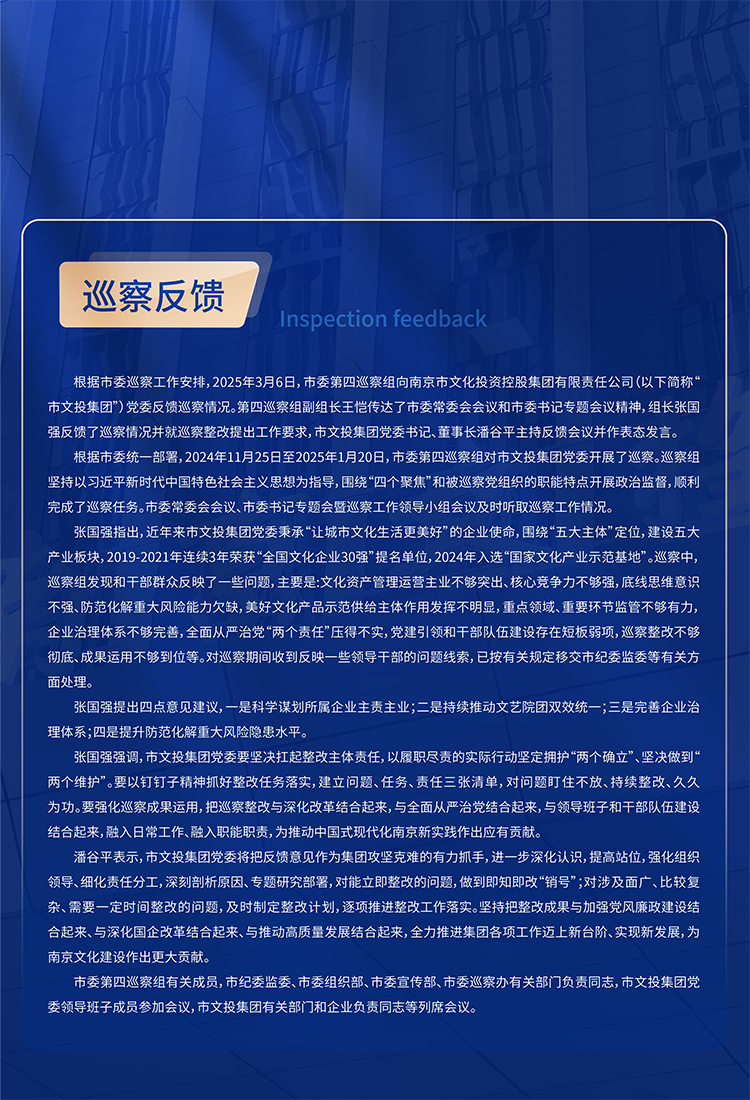 黨建領(lǐng)航南京市文投集團(tuán)領(lǐng)導(dǎo)班子召開2024年度民主生活會(huì)暨巡察整改專題民主生活會(huì)